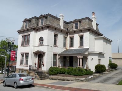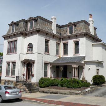 The residence combines French architectural influences with local Pennsylvania building traditions, displaying detailed cornices and period-specific window treatments.
