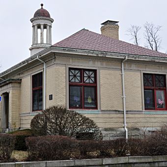 In 1903, Andrew Carnegie provided a $15,000 grant to construct the permanent library building, which was completed in 1904 and later expanded in 1931.