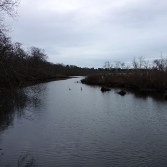 The Carmans River, designated as a New York State scenic waterway, divides the refuge while supporting multiple fish species and water-dependent wildlife.