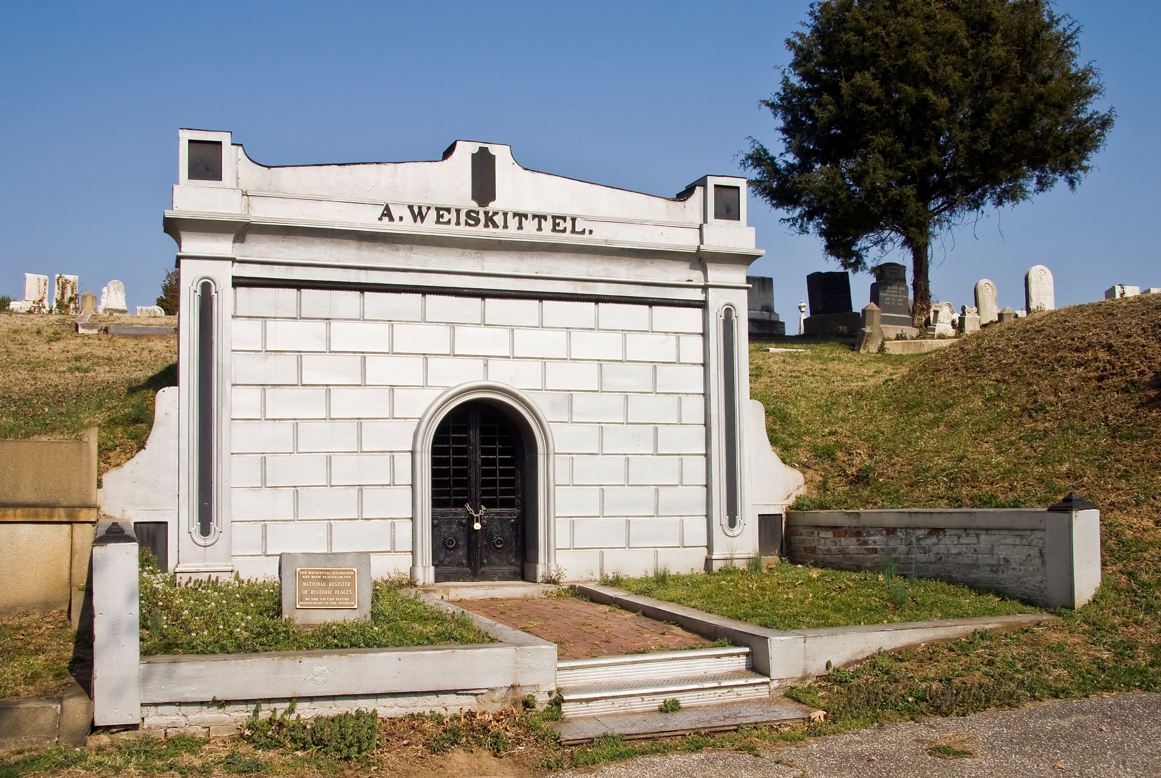 Anton W. Weiskittel, a German immigrant and Baltimore iron founder who manufactured stoves during the Civil War, commissioned this vault before his death in 1884.