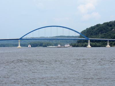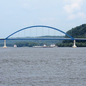 The Dale Gardner Veterans Memorial Bridge extends 2,454 feet across the Mississippi River, featuring a steel tied arch design with a 546-foot main span.
