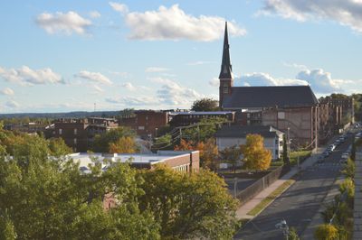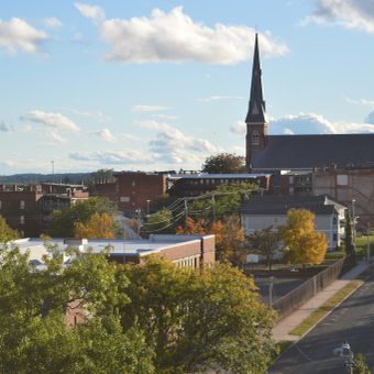 The church building stands at the southwestern edge of downtown Holyoke, near the Wistariahurst Museum and the Holyoke Housing Authority headquarters.