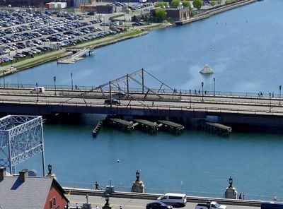 The bridge connects Summer Street across Fort Point Channel, although its draw mechanism was permanently sealed in 1970.