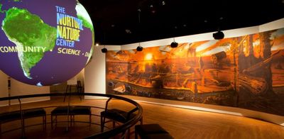 The Nurture Nature Center occupies a three-story building with a science hall, gallery spaces, and meeting rooms for environmental education programs.