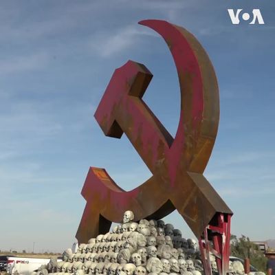 The park contains a sculpture called CCP Virus II, depicting Xi Jinping surrounded by coronavirus proteins, which replaced an earlier version that was destroyed.