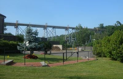 The Manhasset Viaduct spans 679 feet across Manhasset Bay, connecting the Village of Thomaston with the Hamlet of Manhasset on Long Island.