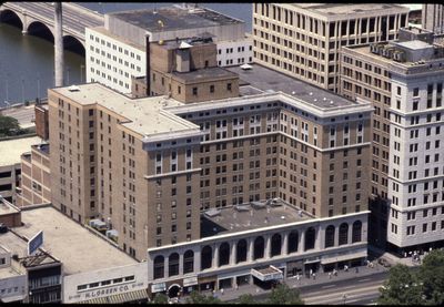 The Neil House stood as a 13-story structure on High Street in Columbus, featuring 657 rooms and multiple dining facilities facing Capitol Square.