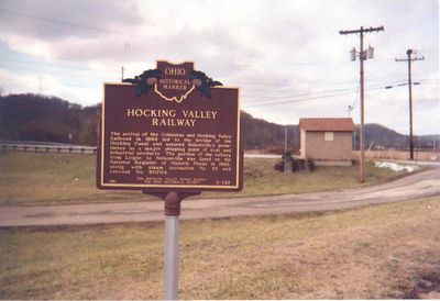 Hocking Valley Railway, Ohio historical marker 0-257 now 1-5 not the duplicated ID 1-5 Faurot oil Well