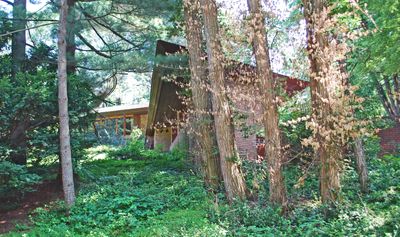 The Palmer House incorporates triangular geometry throughout its 2,000 square feet structure, constructed with Tidewater Red Cypress and distinctive Cranbrook brick materials.