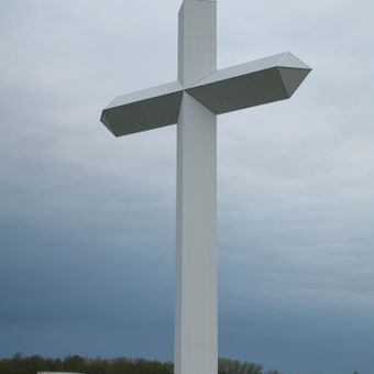 The Cross at the Crossroads is a large steel structure reaching 198 feet (60 meters) high with arms spreading 113 feet (34 meters) across. The monument is constructed from approximately 18 tons of steel securely anchored in a concrete foundation.