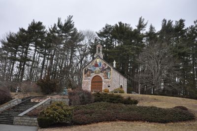The Portiuncula Chapel, constructed in 1953 with materials from Assisi, Italy, serves as Cardinal Richard Cushing's final resting place near the students he supported.