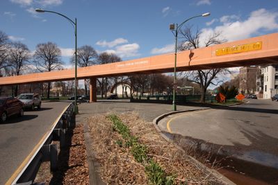 The steel and wooden footbridge spans over Storrow Drive, connecting Beacon Hill and Back Bay neighborhoods to the Charles River Esplanade parklands.