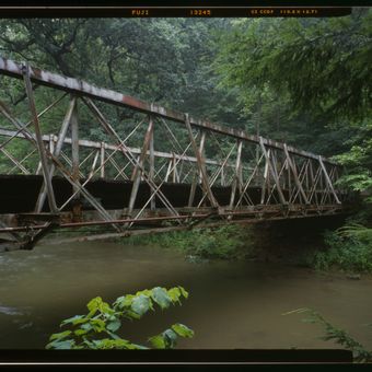 Falling Rock Camp Bridge, Pony truss bridge (out of service) in Licking County, Ohio, USA; Licking County, Ohio, USA