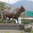 The bronze bull statue stands at the northern end of Avenida Las Delicias, measuring 195 centimeters in height and 285 centimeters in length.