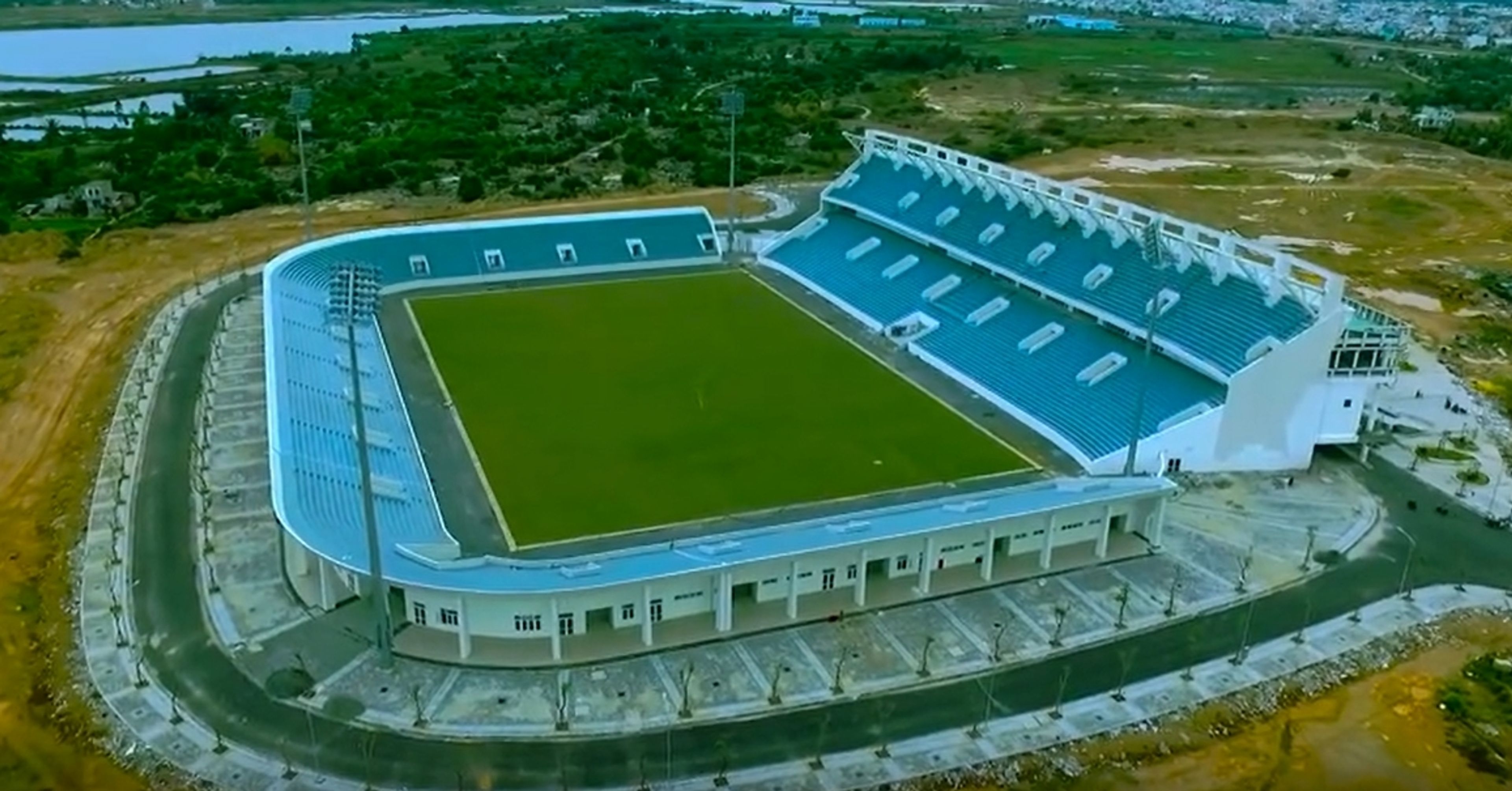 The Hòa Xuân Stadium features a seating arrangement for 20,500 spectators and includes dedicated spaces for teams, event management, and modern sports facilities.