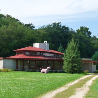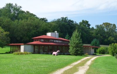 The school board commissioned Frank Lloyd Wright to design the building in 1957, marking a consolidation of individual schools into a single educational facility.