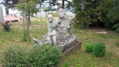 Betonová plastika u vjezdu do Fakultní nemocnice Brno