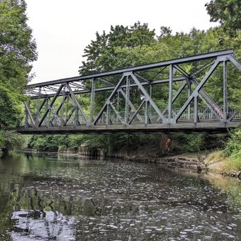 Einsiedlerbrücke, Listed bridge over the Leine river in Hannover-Wülfel, Germany