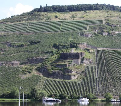 Visitors reach the castle ruins through walking paths that wind through the surrounding vineyards, offering views of the Moselle Valley and neighboring historical structures.
