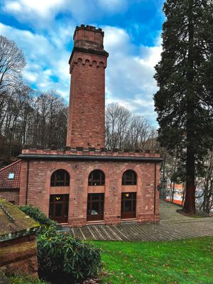 Construction of the ventilation facility began in 1912 to serve the Königstuhl railway tunnel, extracting gases from diesel and steam locomotives until 1971.
