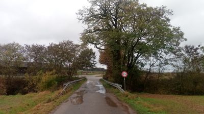 Straßenbrücke, Einen Wirtschaftsweg über die Madonnenlandbahn führende Straßenbrücke bei Hainstadt