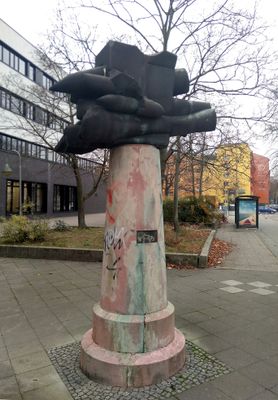 Waffen, one of six sculptures by Michael Schoenholtz in the Heinrich-Zille-Siedlung in Berlin-Moabit, Germany