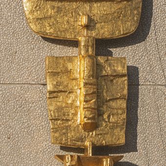 Das apokalyptische Weib und die Sieben Schlangen, architectural sculpture on the façade of the church Maria Regina Martyrum in Berlin-Charlottenburg-Nord, Germany