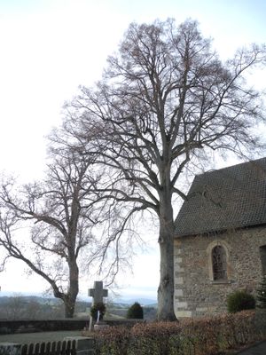 Esche und Linde an der Kirche Fürstenberg, natural monument of Hesse, Germany