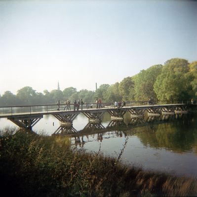 The 60-meter long Dyssebroen spans across Stadsgraven, connecting the urban Christianshavn section with the rural Amager Side of Freetown Christiania in Copenhagen.