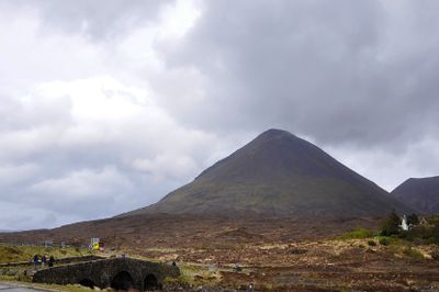 From certain angles, the mountain presents itself as a complete cone of scree, connected to other Red Hills by Bealach na Sgàirde pass.