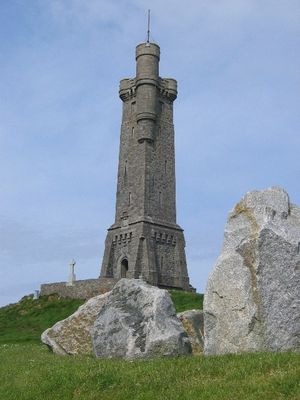 The Lewis War Memorial stands as an 85-foot-high tower constructed from local Gneiss stone and Aberdeenshire granite at the summit of Cnoc nan Uan hill.