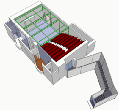 The Tabard Theatre contains Art Nouveau architectural elements within its structure, featuring intricate designs throughout the 96-seat performance space.