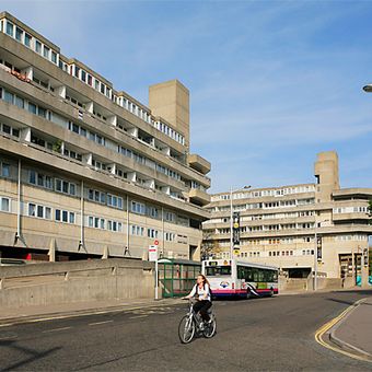 Architects Lyons Israel Ellis designed and constructed Wyndham Court between 1966 and 1969, incorporating white concrete to match the neighboring Southampton Civic Centre.