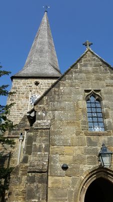 The church structure dates back to the 14th century and received extensive modifications during the Victorian period, including additions to the tower and chancel.