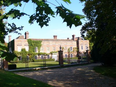 The Manor House displays Georgian architectural elements, including large windows, ornate detailing, and a grand staircase added during the 1714 renovation.