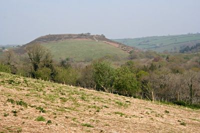 Cadson Bury features a single bank fortification spanning 275 meters in length and 170 meters in width at the summit of Cadson Bury Down.