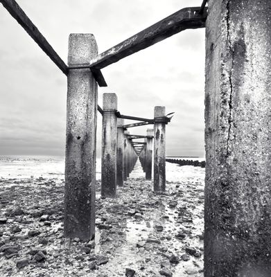 Visitors can observe the remaining concrete posts of the structure during low tide, though some sections fall within restricted Ministry of Defence areas.