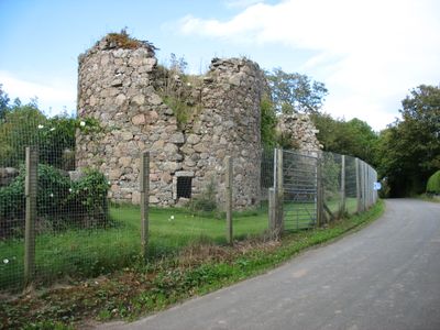 The castle ruins stand on private land near the River Ugie, approximately two miles from the coastal town of Peterhead in northeastern Scotland.