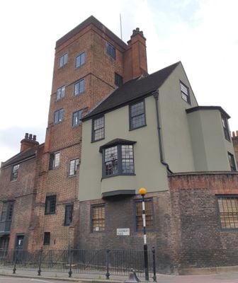A mulberry tree grows next to the tower, connected to a belief that philosopher Francis Bacon planted it for silk production experiments.