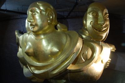 Located near the Silk Street entrance, this fiberglass gilded sculpture guides visitors arriving from Moorgate Station to the Barbican Centre main areas.