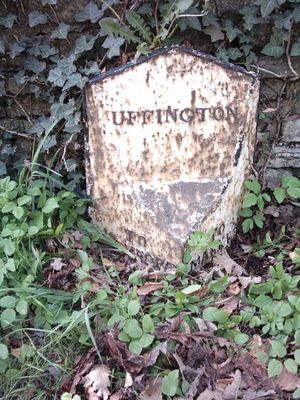 Milepost In Centre Of Village, milestone in Uffington, South Kesteven, Lincolnshire, UK