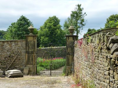Pair of gatepiers in Downham Hall garden, approximately 60 metres north west of school, Grade II listed gateway in Downham, Ribble Valley, Lancashire, BB7