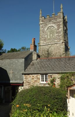 Church Cottage Attached To Lych Gate On Right, cottage in St. Clement, Cornwall, UK