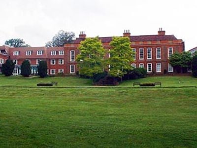 Frognal House stands within seven acres of landscaped grounds, featuring decorative brickwork, elaborate gables, and a central courtyard layout.