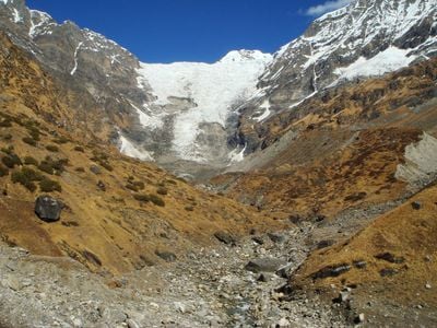 Located in the Kumaon region at 3,800 meters elevation, Kafni Glacier extends across a length of 5 kilometers and measures 2.5 kilometers in width.