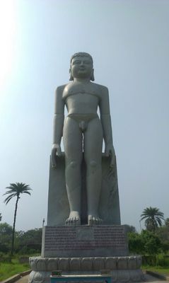 The statue represents a significant pilgrimage destination for Jain followers, reflecting the religious importance of Champapur in eastern India.
