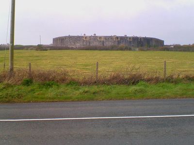 The granite fort stands 360 feet above sea level, featuring defensive ditches on three sides and multiple gun positions overlooking the coastline.