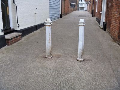 Bollards At East End, bollard in Bury St. Edmunds, St. Edmundsbury, Suffolk, UK