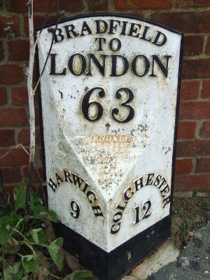 Milepost On North Eastern Verge, milestone in Bradfield, Tendring, Essex, UK