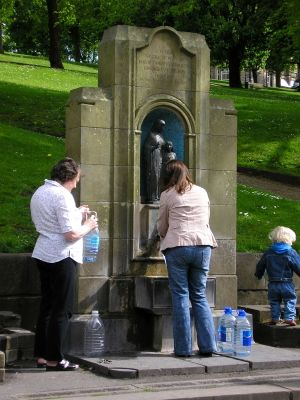 Visitors can collect free spring water directly from the source, located at the base of The Slopes opposite The Crescent and Natural Baths.